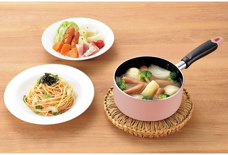 ムダなく調理!少人数分の調理にちょうどいいコンパクトシリーズ。一人暮らしや朝食づくりに最適な内面ふっ素加工のミニサイズのソースパン。ガラス蓋もついており朝食作り、お弁当作りなど、「ちょっとだけ」必要な時に最適。オール熱源対応。