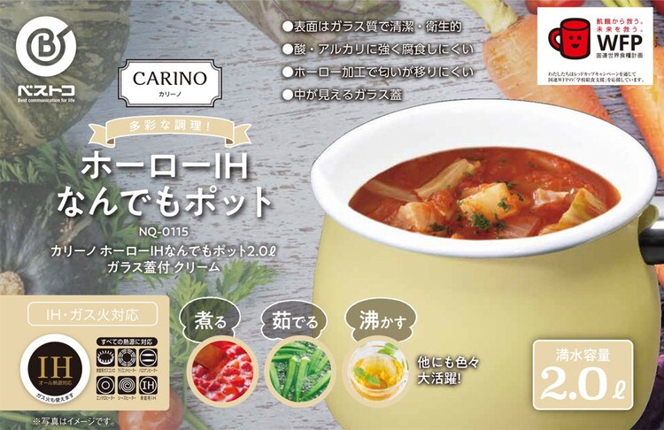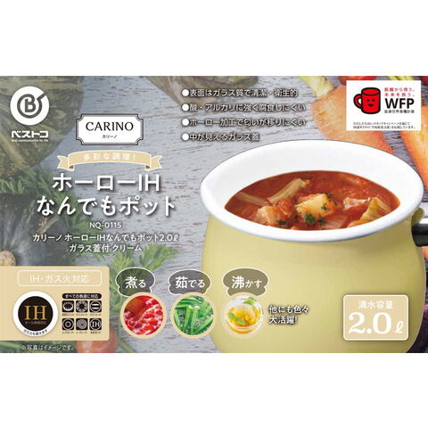 ベストコ マルチポット 片手鍋 2.0L ホーロー IH クリーム ガラス蓋付 IH NQ-0115 カリーノ なんでもポット【送料無料】