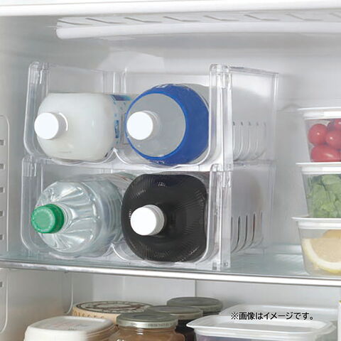 冷蔵室内の空間を有効利用と整理整頓!!積み重ねでき、横連結も可能でペットボトルが取り出しやすい!別売りの専用トレーを使用すれば隙間を有効活用できる。ペットボトル収納目安:2L迄の丸型・角型ペットボトル収納可能