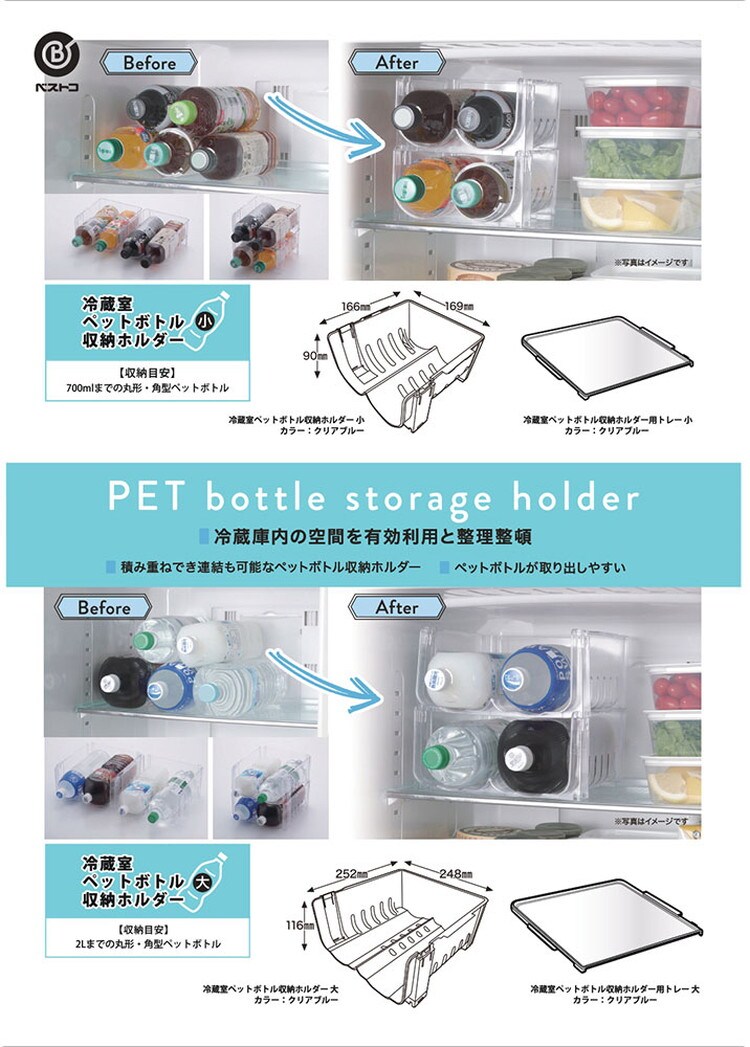 ベストコ 冷蔵庫 ペットボトル 収納 ホルダー 用 トレー 小 クリアブルー MA-4082