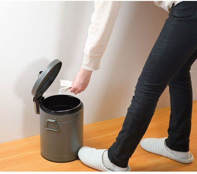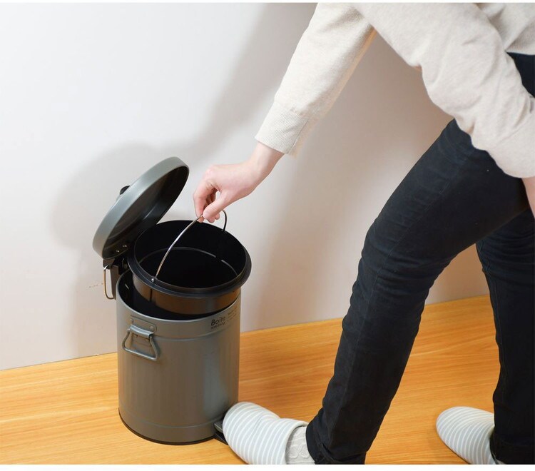 蓋がゆっくり閉まる静音設計のトラッシュカン。手を汚さずに開けられる、便利なペダル開閉式。蓋がゆっくり閉まる静音設計。中子は取り出しやすい持ち手付仕様。