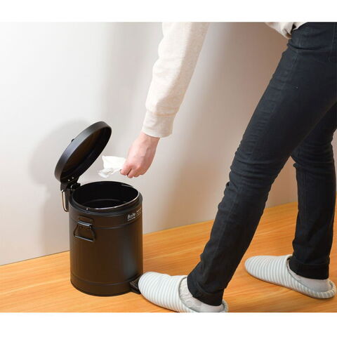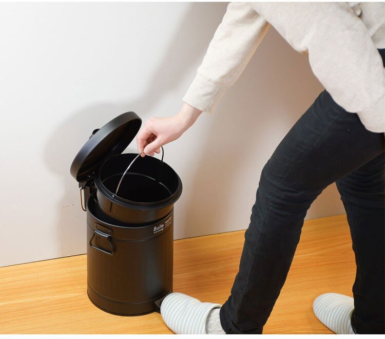 蓋がゆっくり閉まる静音設計のトラッシュカン。手を汚さずに開けられる、便利なペダル開閉式。蓋がゆっくり閉まる静音設計。中子は取り出しやすい持ち手付仕様。