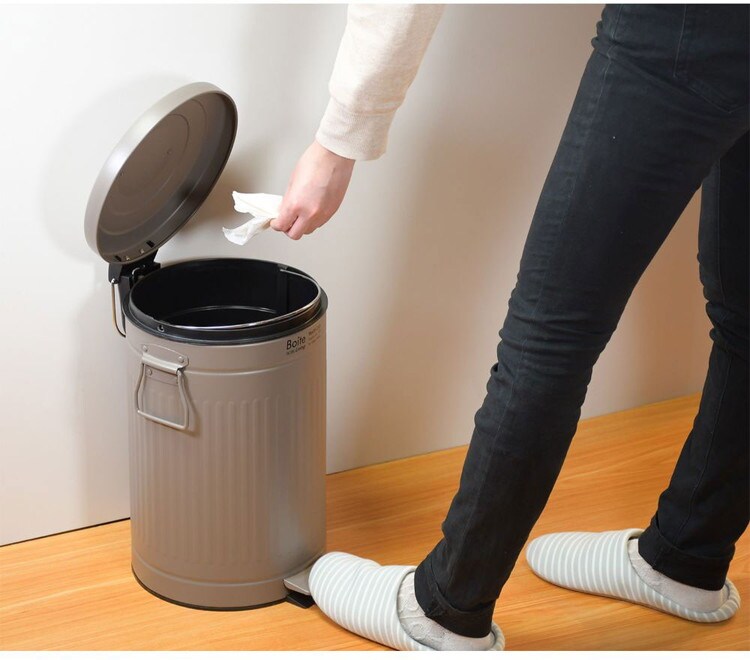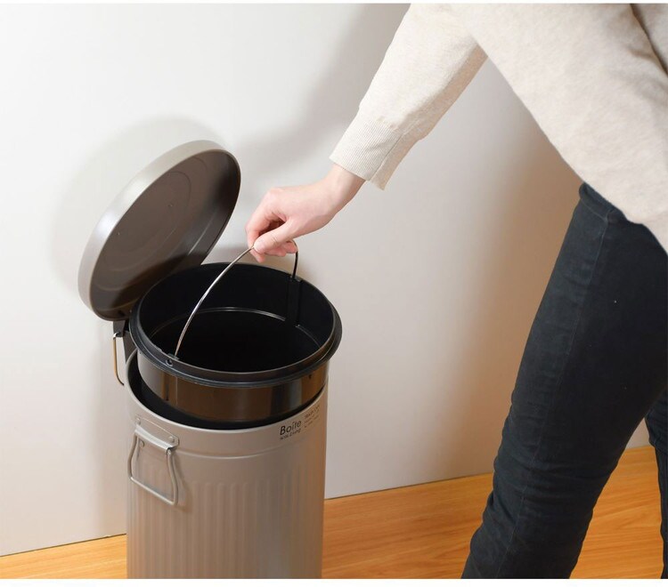 蓋がゆっくり閉まる静音設計のトラッシュカン。手を汚さずに開けられる、便利なペダル開閉式。蓋がゆっくり閉まる静音設計。中子は取り出しやすい持ち手付仕様。
