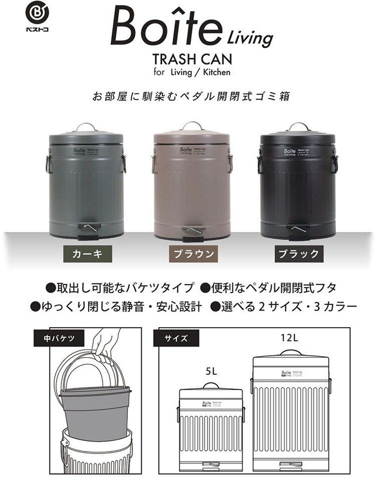 ベストコ ゴミ箱 ふた付き 12L ペダル式 静音設計 丸型 ブラウン NQ-0194 Boite トラッシュカン【送料無料】