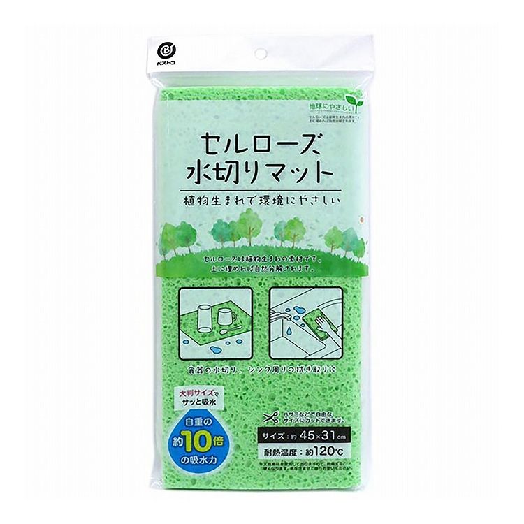 ベストコ セルローズ 水切りマット キッチン 食器 吸水 約45×31cm グリーン MA-192