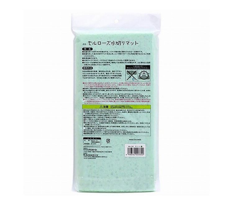 使い方いろいろ! 抜群の吸水力で水周りをキレイに。自重の約10倍の水分を吸水する、ソフトで吸水性に優れたセルローズ素材です。食器を洗った後の水切りマットをはじめ、シンク周りやテーブルの拭き取りなどにもご利用いただけます。煮沸消毒できます。ハサミなどで自由なサイズに切って使用できます。セルローズは植物生まれの天然素材。土に埋めると自然に分解される地球にやさしい素材です。