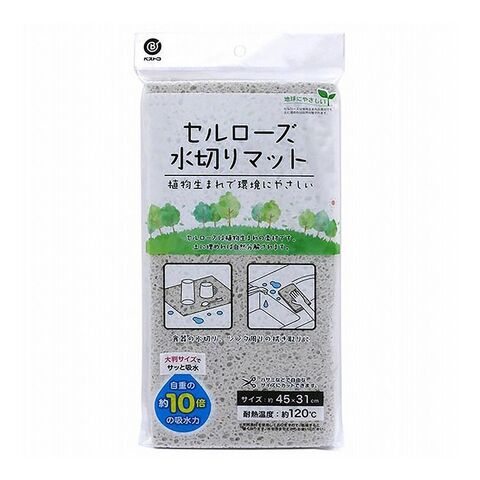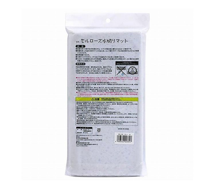 使い方いろいろ! 抜群の吸水力で水周りをキレイに。自重の約10倍の水分を吸水する、ソフトで吸水性に優れたセルローズ素材です。食器を洗った後の水切りマットをはじめ、シンク周りやテーブルの拭き取りなどにもご利用いただけます。煮沸消毒できます。ハサミなどで自由なサイズに切って使用できます。セルローズは植物生まれの天然素材。土に埋めると自然に分解される地球にやさしい素材です。