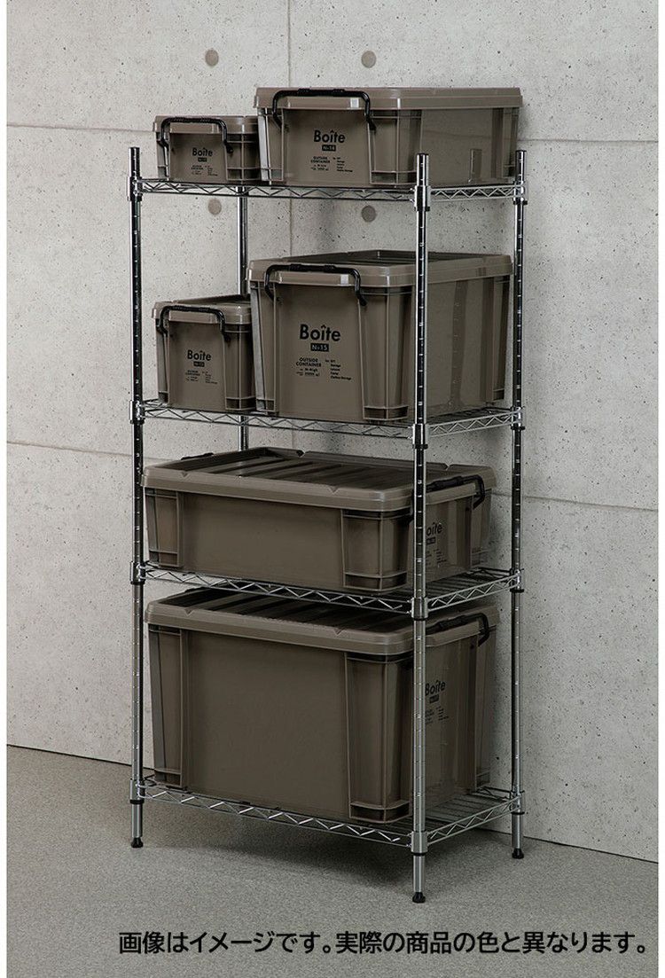 マルチに活躍可能!収納コンテナガレージのカー用品や工具の収納、キャンプやフリーマーケットなどのアウトドアシーン で特に活躍してくれる収納ボックスです。 蓋にVカットを入れているので、バイク・自転車等の荷台に固定しやすい。本体と蓋の目盛りを利用すれば寸法の計測、角材の鋸引きに便利。積み重ね自由で、限られた空間を有効に利用できます。手にやさしい形状のプラスチック製の留め具を使用しています。