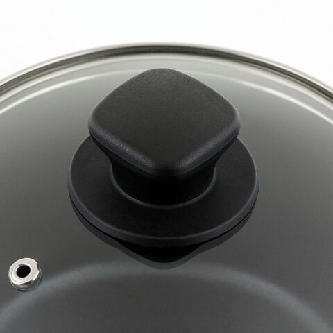 ■材質本体/アルミニウム合金、はり底/ステンレス鋼(クロム16%)、取っ手/フェノール樹脂(耐熱温度150度)、内面/ふっ素樹脂塗膜加工、 外面/焼付け塗装、蓋/全面物理強化ガラス、つまみ/フェノール樹脂(耐熱温度150度)、座板/ナイロン(耐熱温度180度)