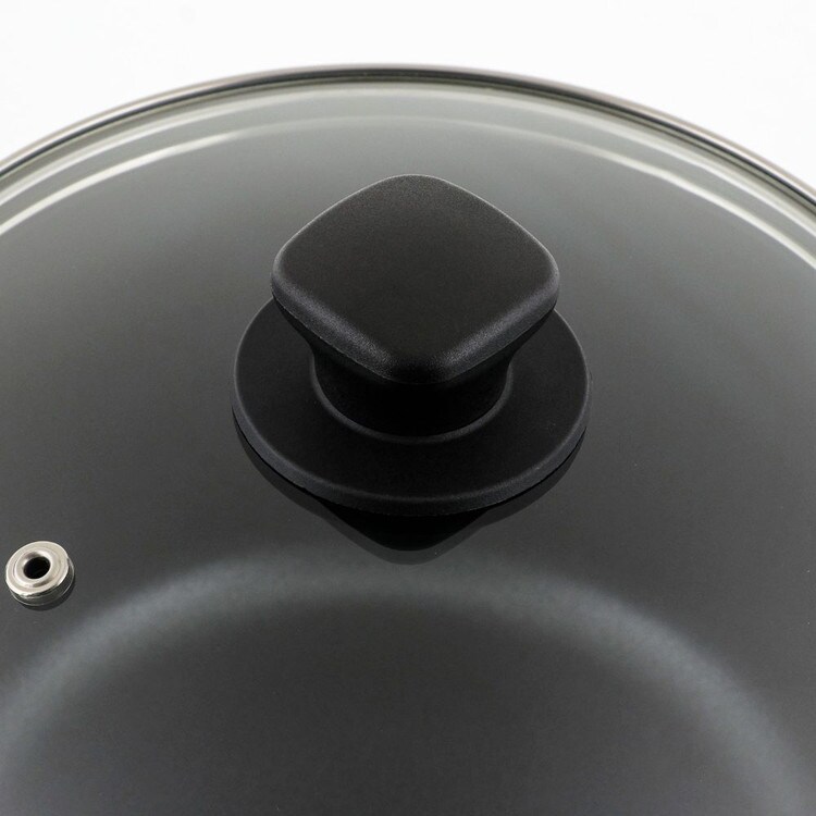■材質本体/アルミニウム合金、はり底/ステンレス鋼(クロム16%)、取っ手/フェノール樹脂(耐熱温度150度)、内面/ふっ素樹脂塗膜加工、 外面/焼付け塗装、蓋/全面物理強化ガラス、つまみ/フェノール樹脂(耐熱温度150度)、座板/ナイロン(耐熱温度180度)
