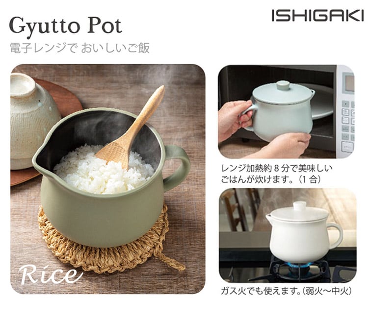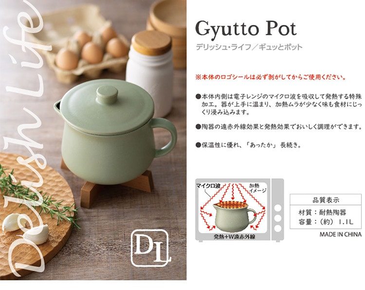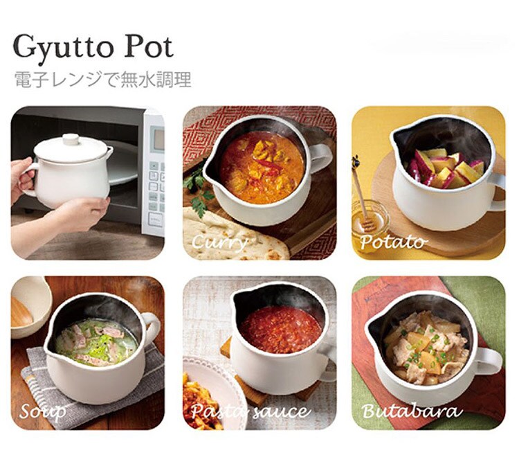 ギュッとポット 電子レンジ無水調理鍋 電子レンジ調理 1.1L レシピ付き ガス火対応 電子レンジ用 炊飯器 1合 無水調理 調理器 ギュットポット 耐熱 陶器 かわいい 可愛い おしゃれ【送料無料】