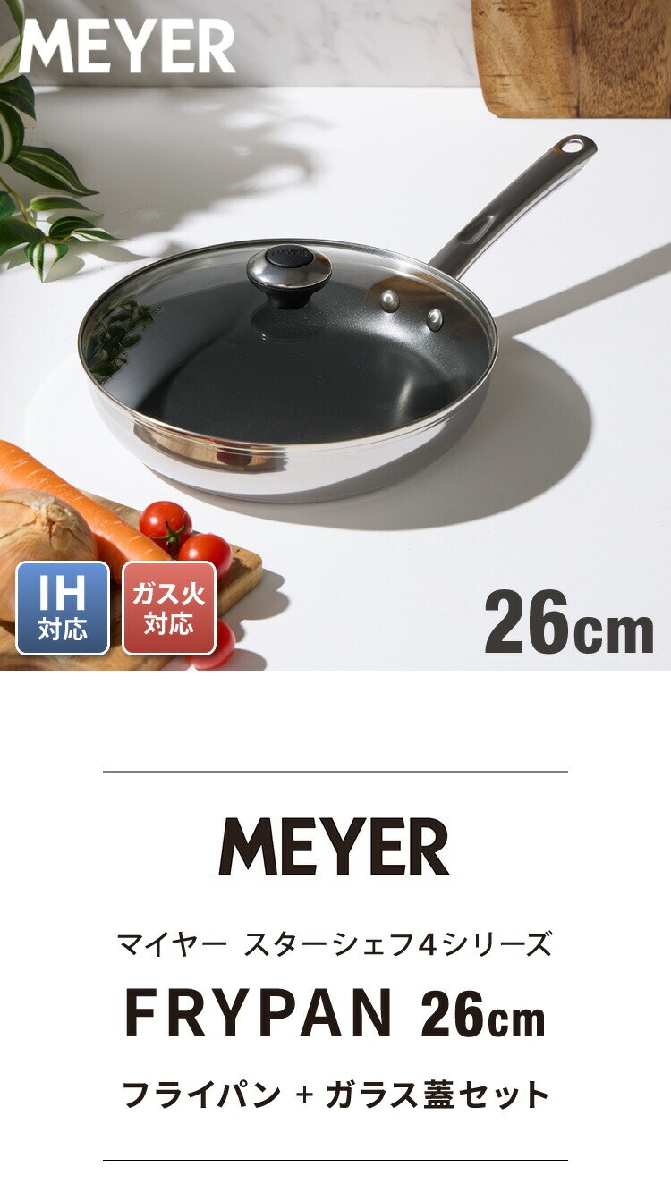 MEYER マイヤー フライパン 26cm ガラス蓋セット ステンレス ガス火 IH対応 PFOAフリー STAR CHEF 4 スターシェフ 新モデル シルバー フッ素 焦げ付かない シンプル おしゃれ【送料無料】