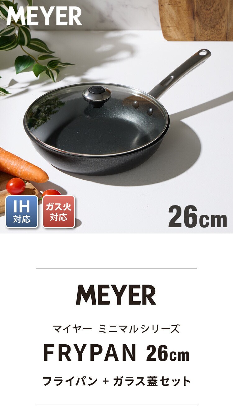 MEYER マイヤー フライパン 26cm ガラス蓋セット ガス火 IH対応 PFOAフリー ミニマル Minimul ブラック 黒 ステンレス シルバー フッ素 焦げ付かない シンプル おしゃれ【送料無料】