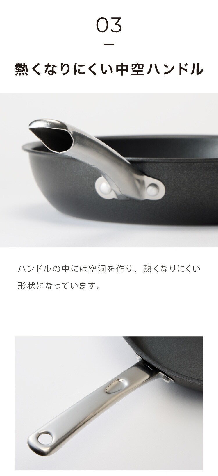 内面のリベットにもフッ素樹脂加工。食材がこびりつきにくくお手入れ簡単。