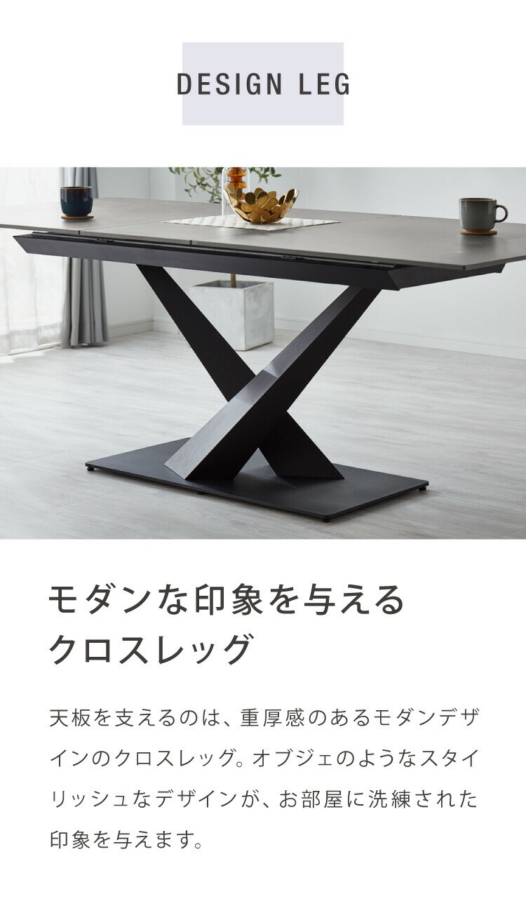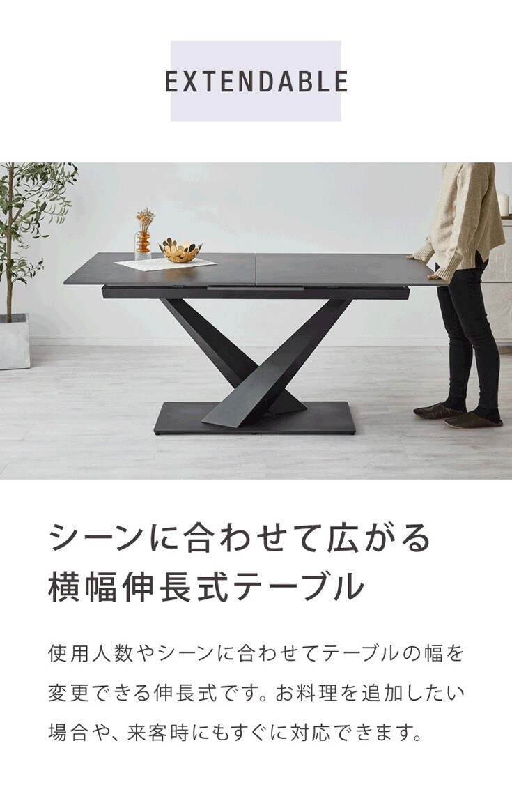 セラミックトップの存在感のあるオートマティック伸長ダイニングテーブル