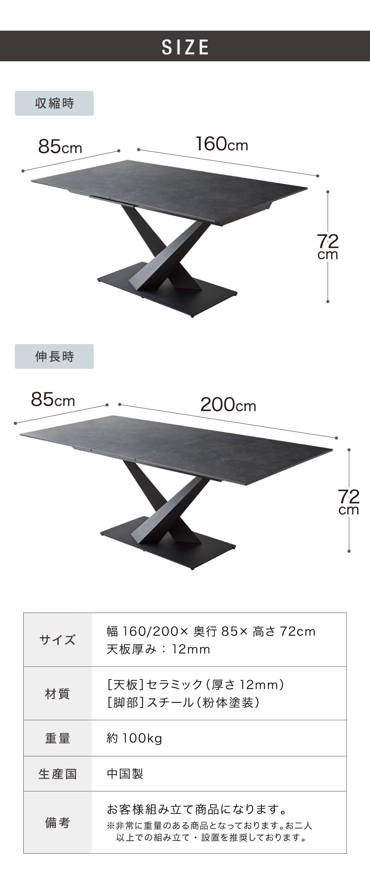 [本体サイズ]幅160~200×奥行85×高さ72cm