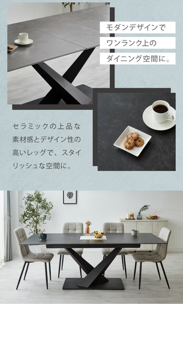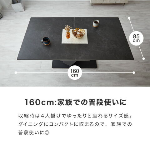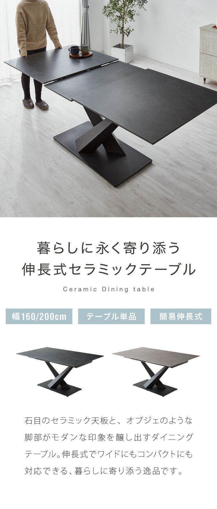 セラミック 伸長式ダイニングテーブル 幅160~200 単品 伸縮 4人掛け 6人掛け 伸縮テーブル モダン 伸長式 ダイニング 耐水 耐熱 白 艶消し 傷がつきにくい おしゃれ【送料無料】