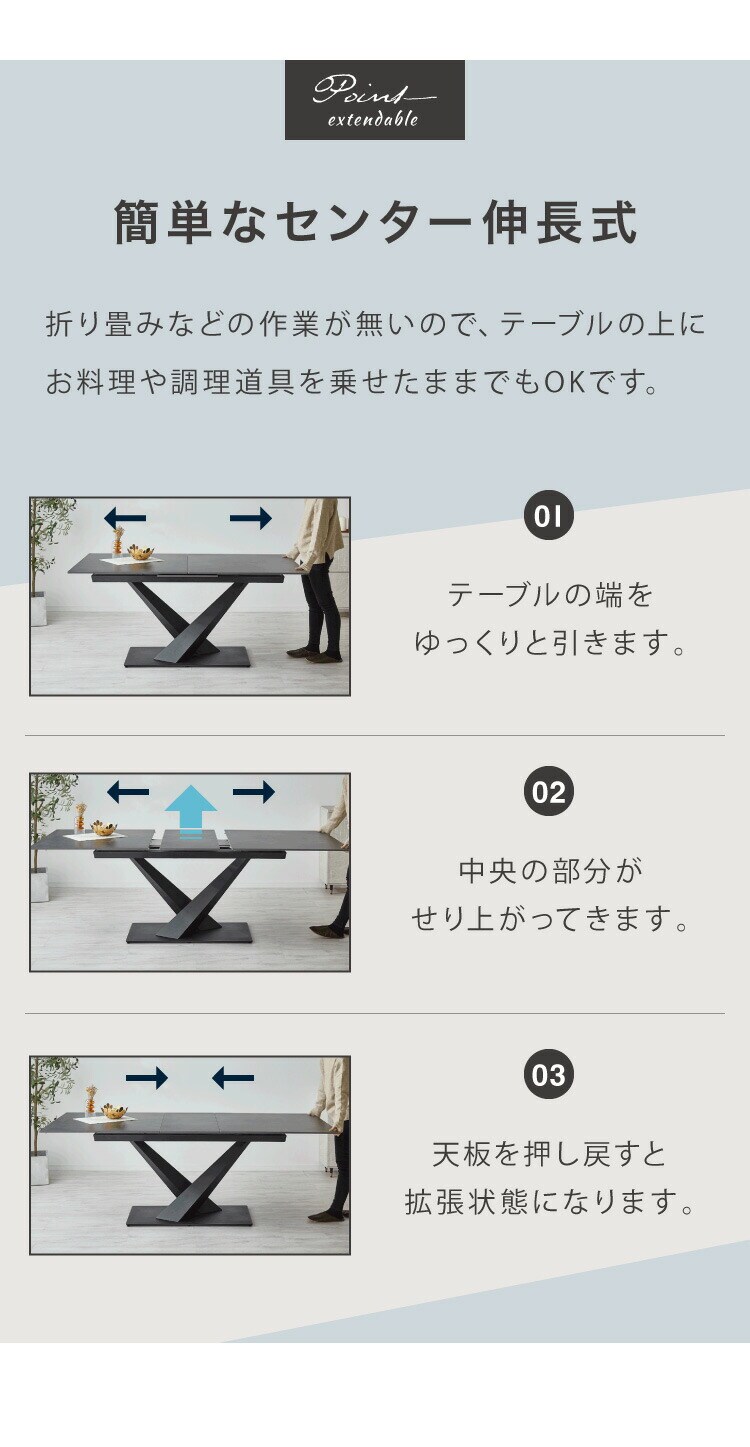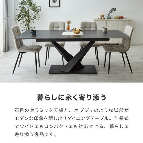 セラミックトップの存在感のあるオートマティック伸長ダイニングテーブル