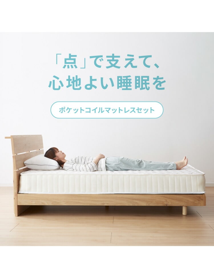 【セット販売】 ベッドフレーム ポケットコイルマットレス セミダブル すのこベッド おしゃれ 韓国インテリア 北欧 すのこ 脚付き 木目調 低床 かわいい コンパクト ステージベッド 可愛い ベット【送料無料】