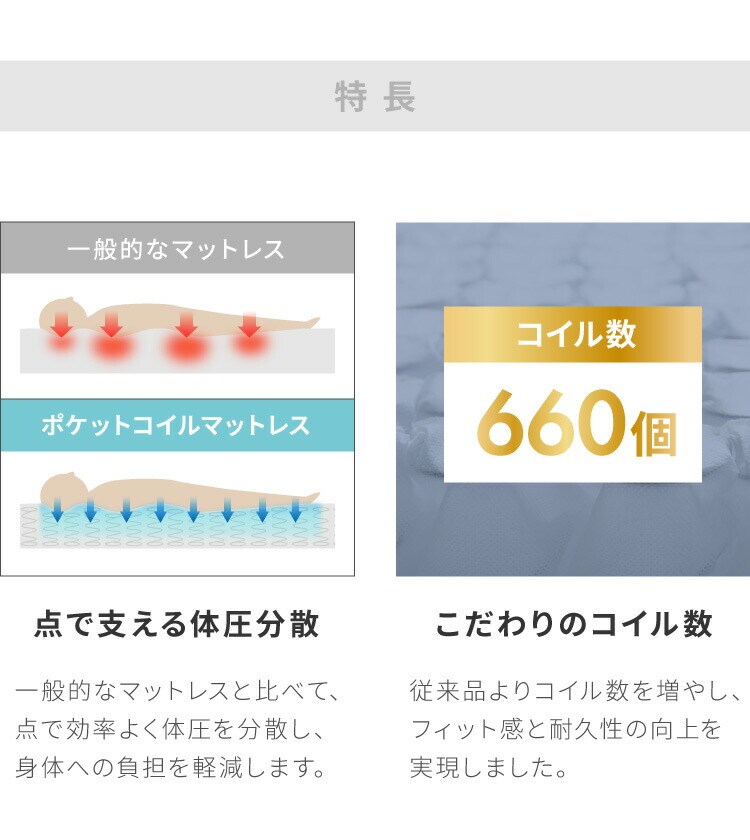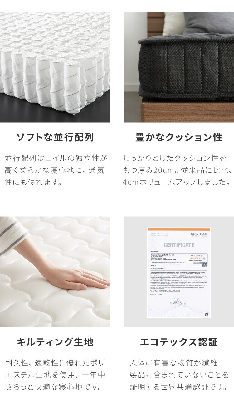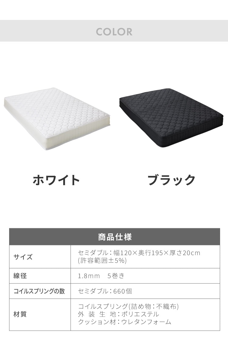 セミダブル:幅120×長さ195×厚さ20cm(許容範囲±5%)