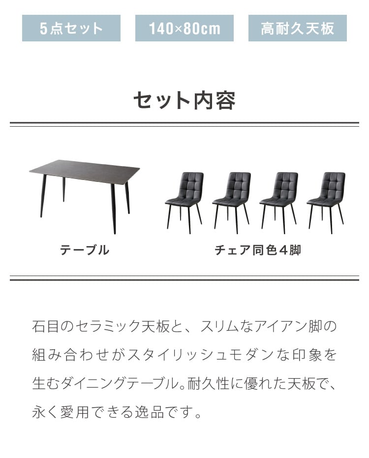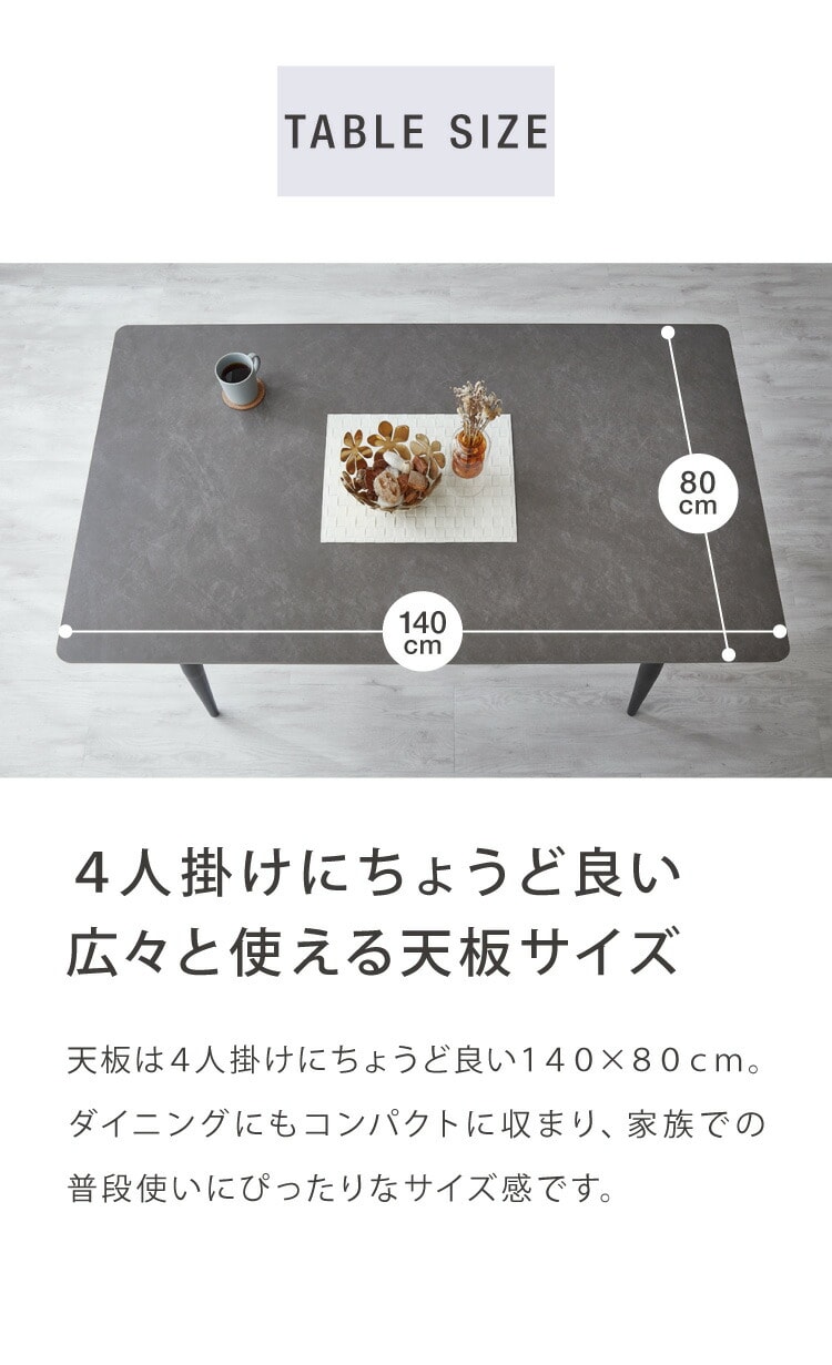 セラミック ダイニングテーブルセット 幅140 ダイニング5点セット 4人掛け テーブル モダン ダイニング 耐水 耐熱 白 艶消し 傷がつきにくい おしゃれ【送料無料】のレビュー