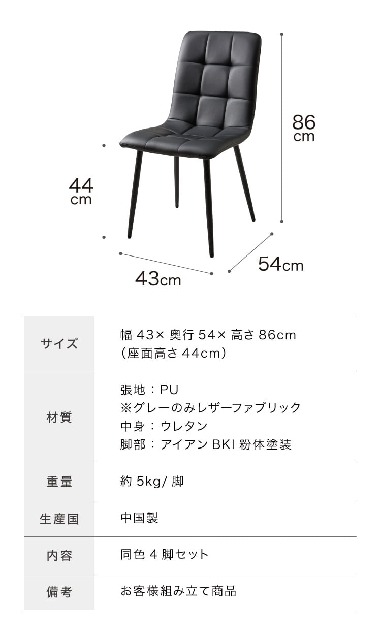 幅43cm×奥行54cm×高さ86(座面高44)cm