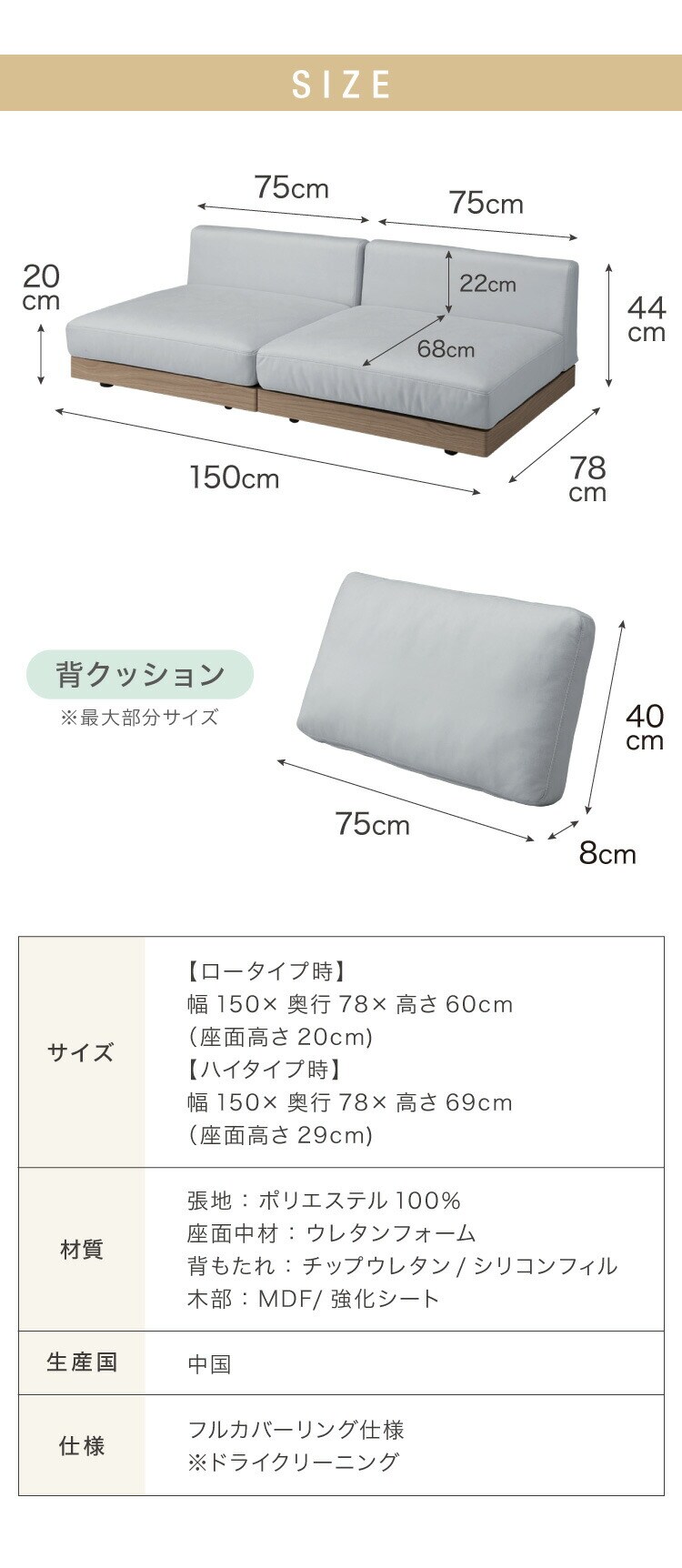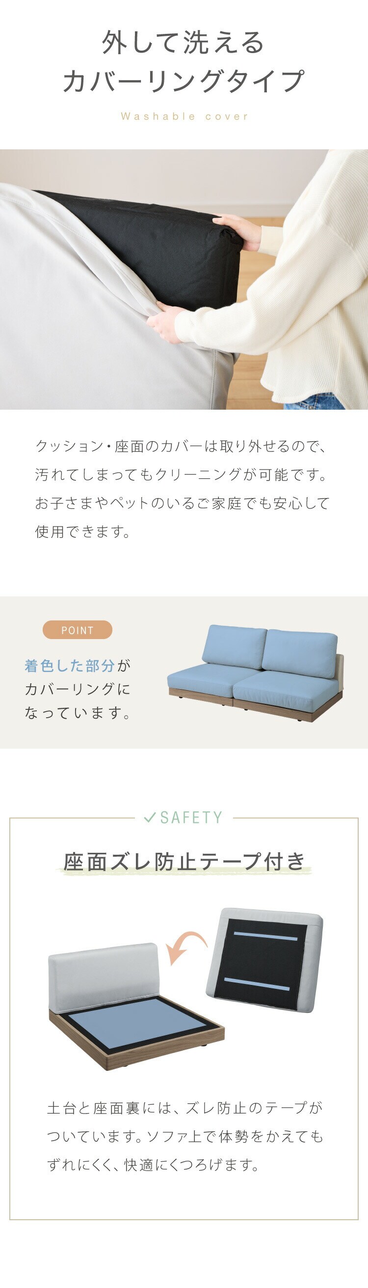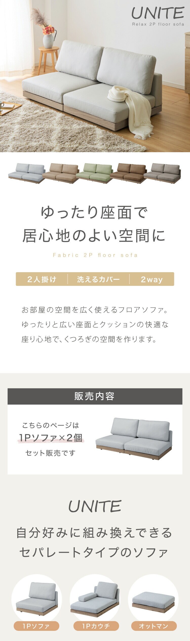 ソファ フロアソファ ローソファ 2人掛け 2P 幅150 座面高さ20 カバーリングソファ 洗える 二人掛け 二人用 2.5人掛け 組み合わせ ファブリック コーナーソファ sofa ひろびろ座面【送料無料】