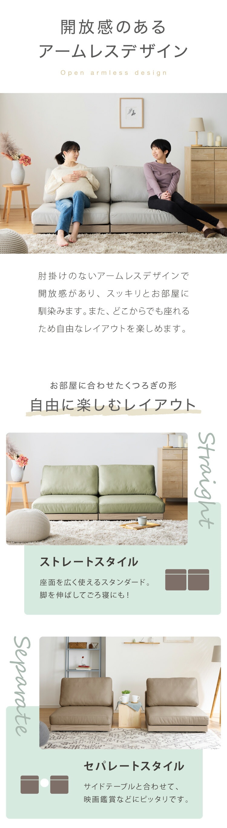 レイアウト自由自在!アームレスデザイン!こたつとも相性抜群!