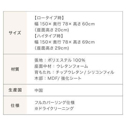 [ハイタイプ時]幅150×奥行78×高さ69(座面高さ29)cm