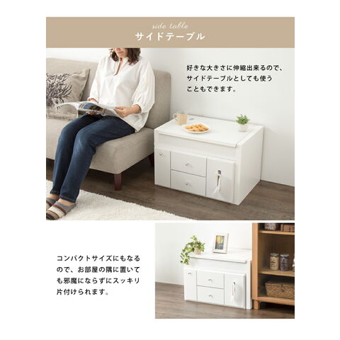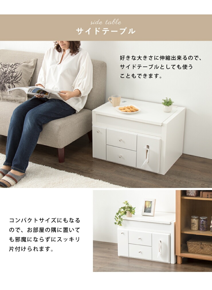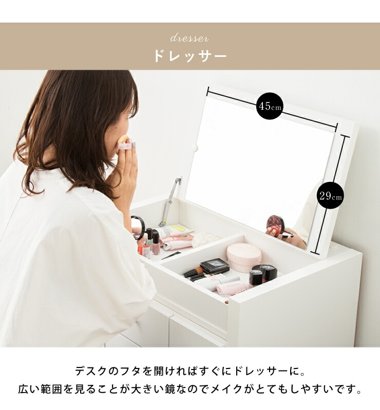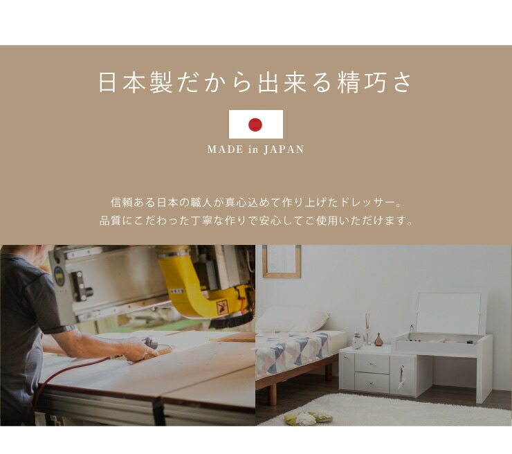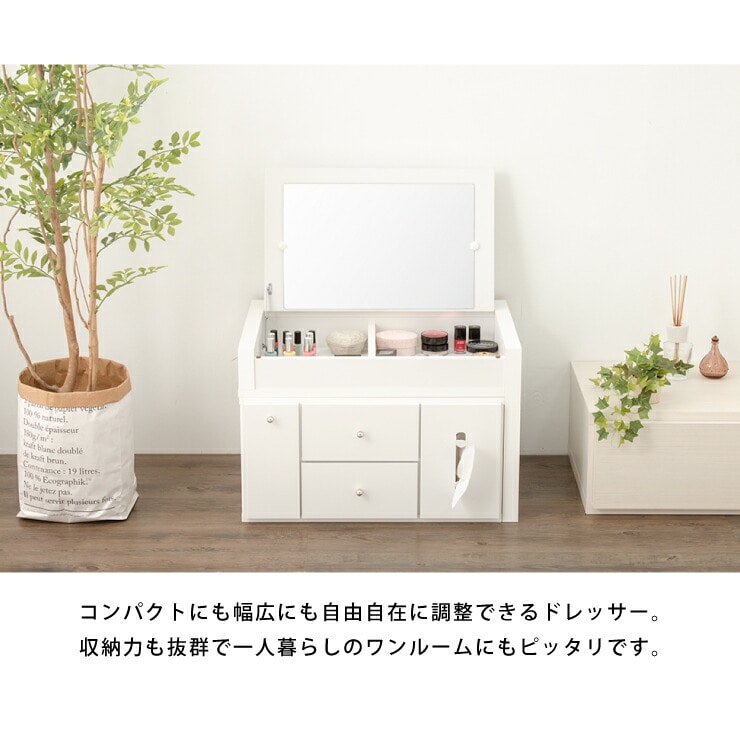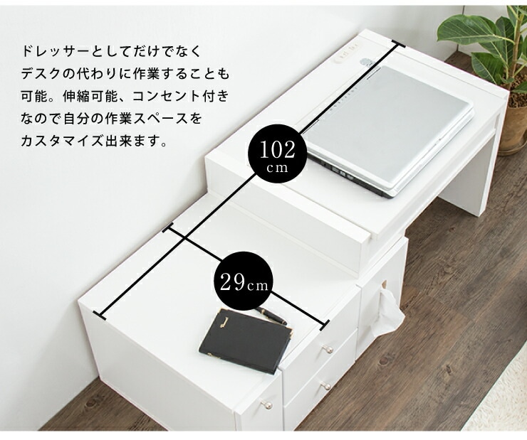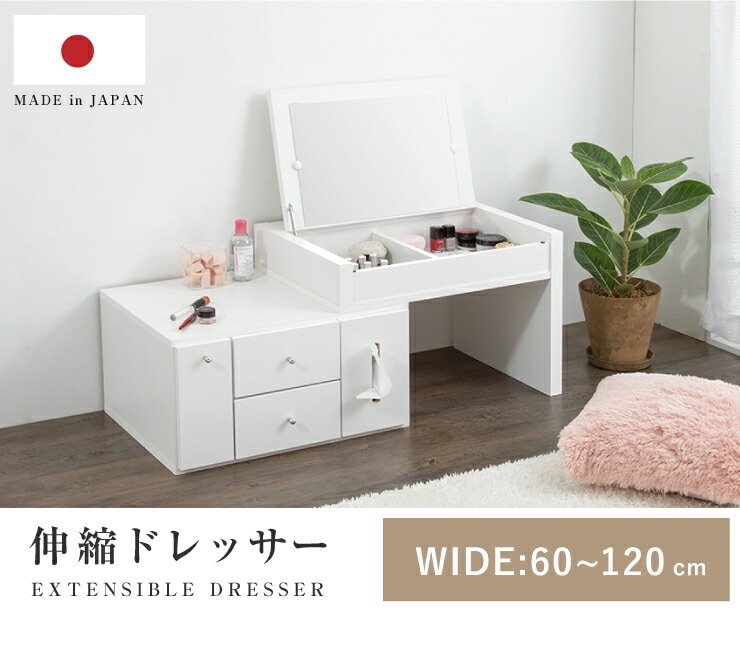 ドレッサー テーブル ミラー付き 鏡台 国産 完成品 伸縮 コンパクト デスク ロータイプ 白 ホワイト収納 省スペース 大容量 ローテーブル コスメワゴン メイク台 化粧台 おしゃれ【送料無料】