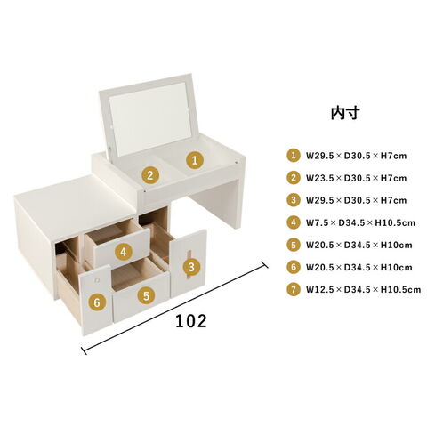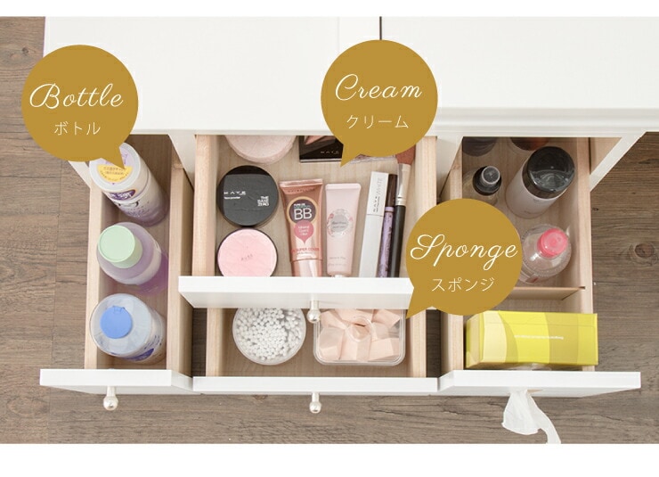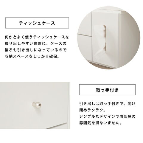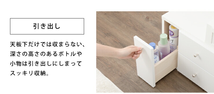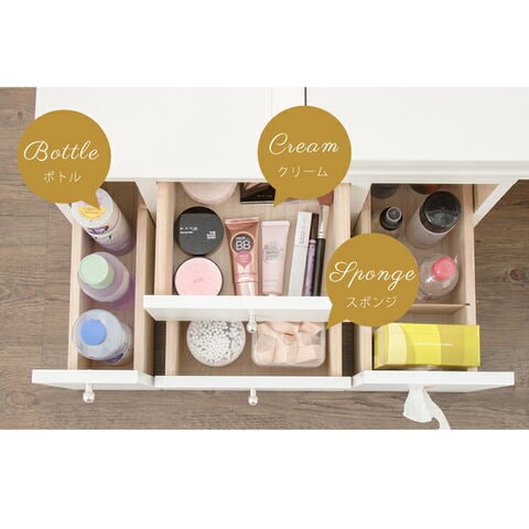 〔引出内寸〕(左部)幅7.5×奥行34.5×深さ10.5cm(有効深さ)24.5cm(中央)幅20.5×奥行34.5×深さ10cm(右部)幅12.5×奥行34.5×深さ10.5cm(有効深さ)24.5cm