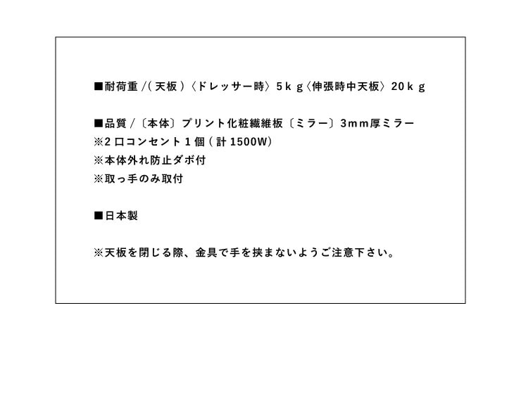 〔耐荷重〕(天板)〈ドレッサー時〉5kg〈伸張時中天板〉20kg