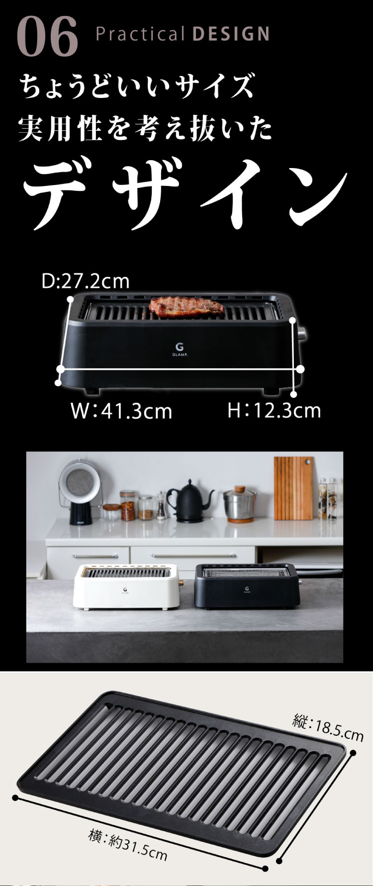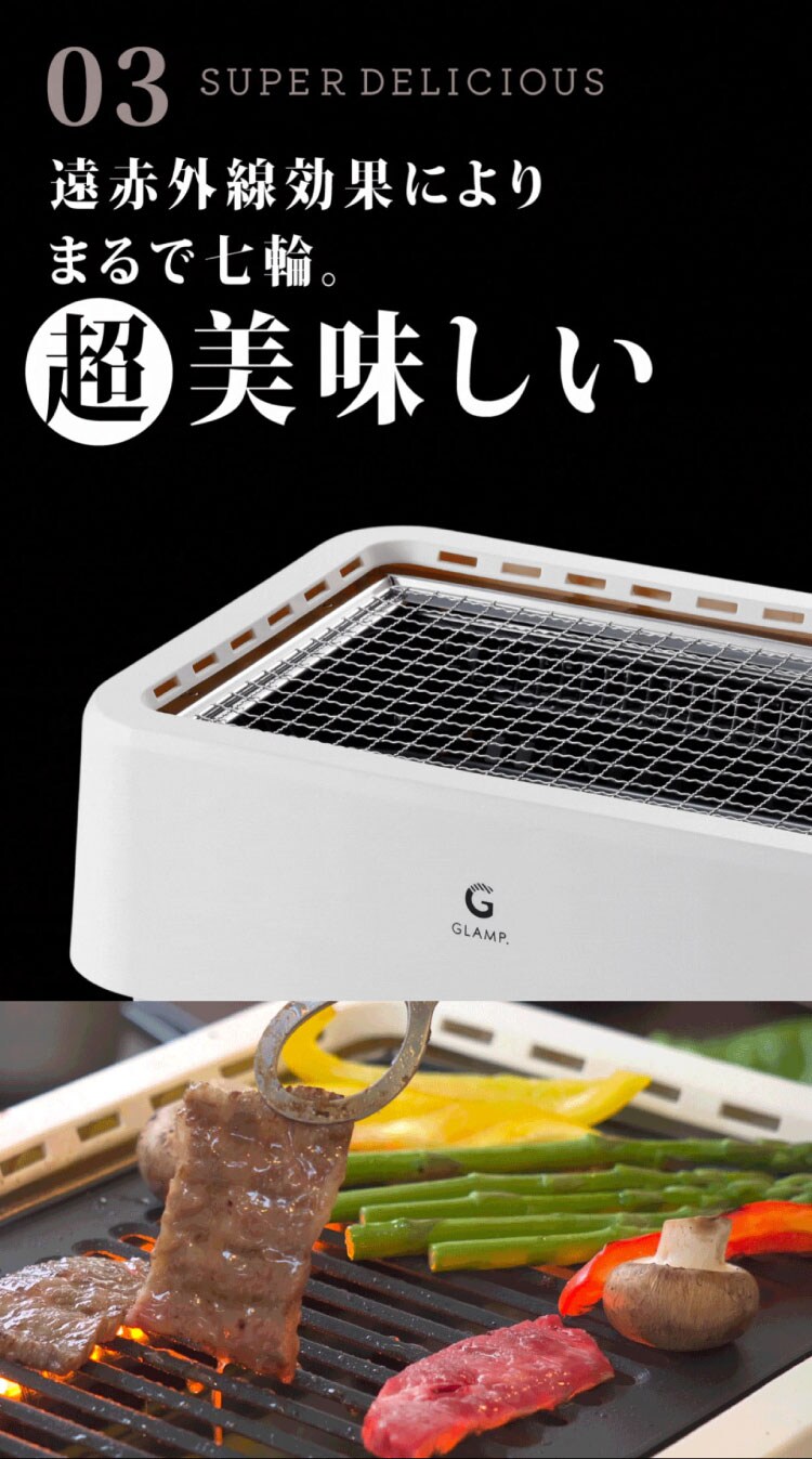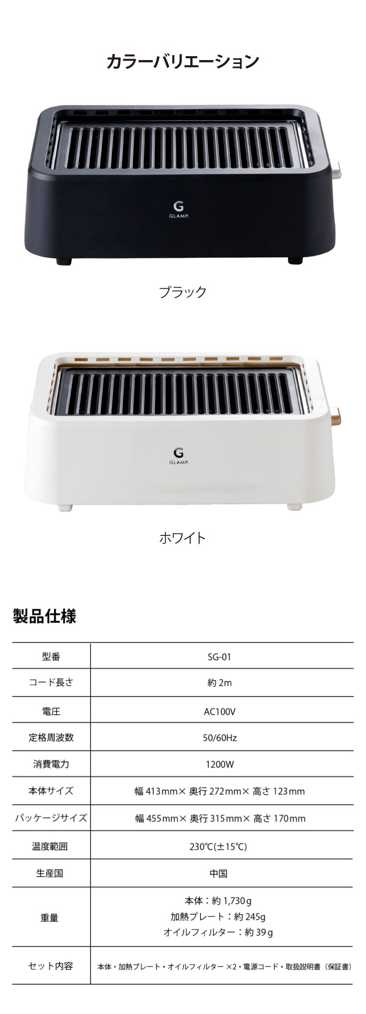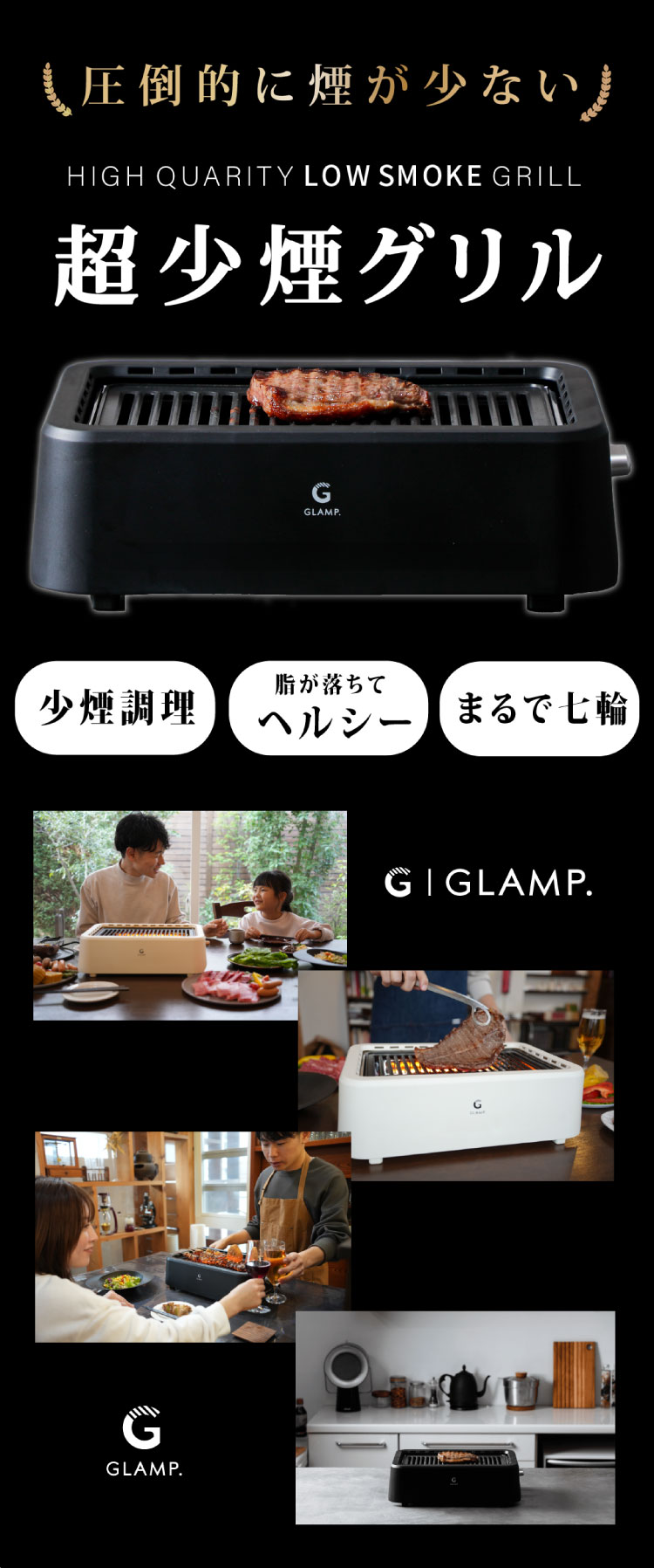 GLAMP 超少煙グリル 減煙 煙が出ない 焼肉 ホットプレート バーベキュー コンロ グランプ 遠赤外線 スモークレス 煙が少ない 電気 焼き鳥 おしゃれ コンパクト SG01【送料無料】