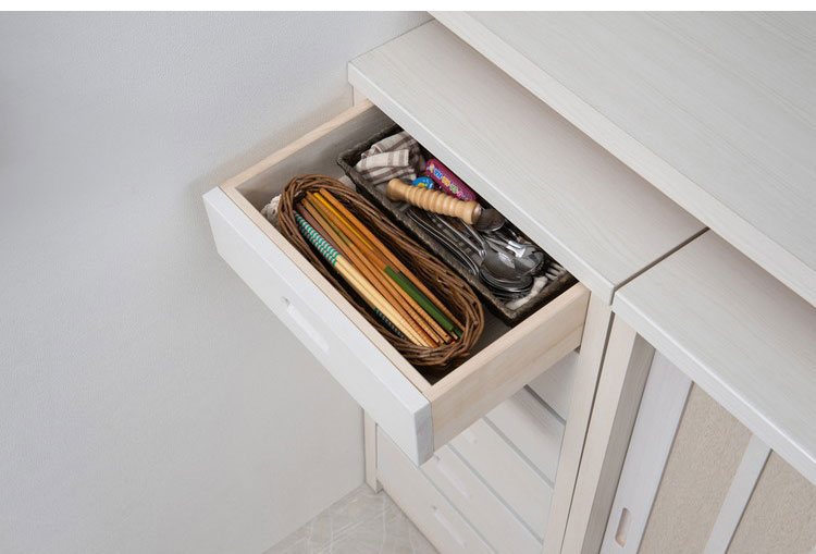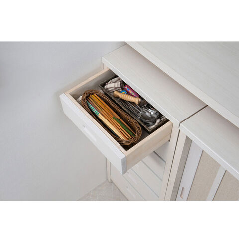 ■商品について/長く使える品質と高級感漂うデザインの【Tatis】シリーズが新登場!桐の木目を引き立たせたうづくり仕上げ、職人が組み上げた、日本製の完成品ならではの洗練されたデザインが魅力的なキッチンカウンター下収納シリーズです。和室はもちろん、洋室でも違和感なくお洒落なお部屋に演出してくれます♪スリムなのにしっかりと小物を収納する事ができます。キッチンの小物アイテムは、案外たくさんあります。6段もあるスリムチェストは、そんな小物も綺麗に小分けして収納できるのが便利です。お箸や、スプーンなどのカトラリーやラップ類、ティータイム用のコーヒーや紅茶、また、タオルやキッチンペーパーなども収納ができます。スリムなのにこれだけのアイテムがしっかりと収納できる日本製のカウンター下チェストです。
