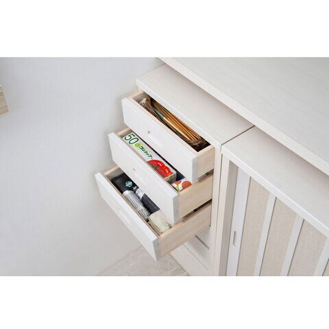 Tatis 幅40.5cm 奥行30cm 高さ86.5cm 天然木桐材のスリムチェスト カウンター下収納 キッチン収納 ホワイト 日本製 国産 完成品 収納家具 チェスト タンス リビング収納 インテリア【送料無料】のレビュー