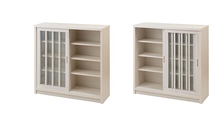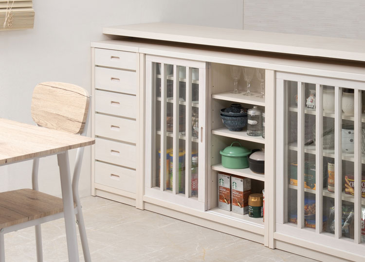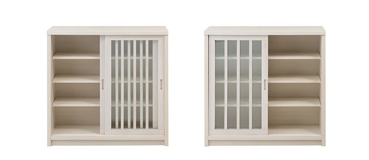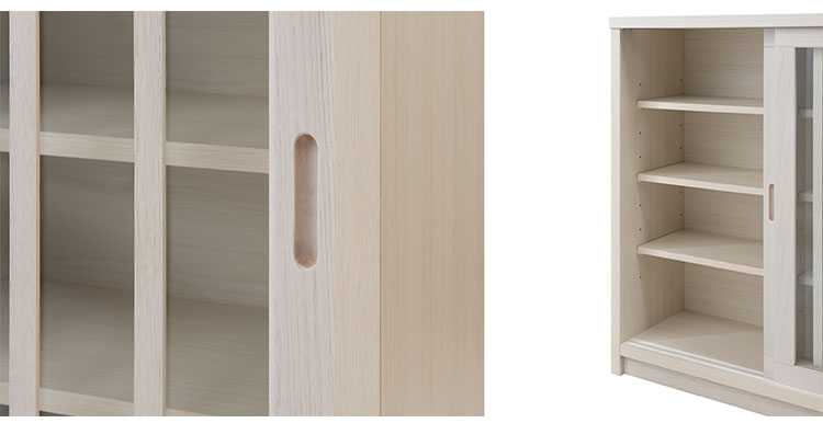 ■商品の仕様/前板枠:桐材(ウレタン樹脂塗装)、扉枠内:ガラス、天板:強化プリント紙化粧繊維板、その他:プリント紙化粧繊維板