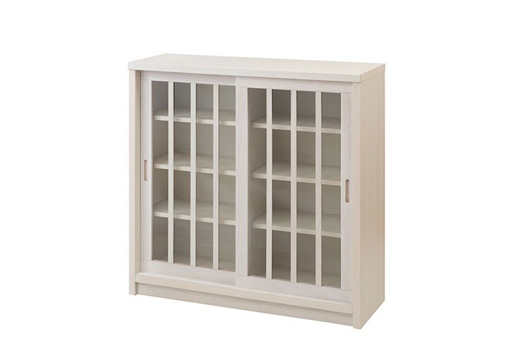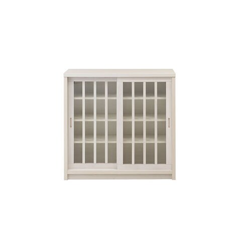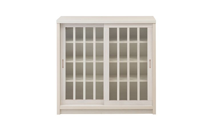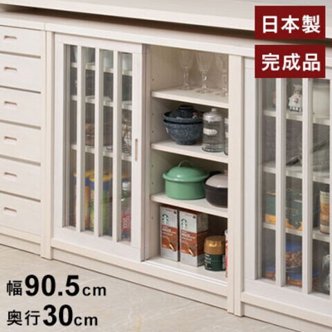 Tatis 幅90.5cm 奥行30cm 高さ86.5cm 天然木桐材の格子ガラス引戸キャビネット カウンター下収納 キッチン収納 ホワイト 日本製 国産 完成品 木製 桐 収納家具 チェスト タンス リビング収納【送料無料】