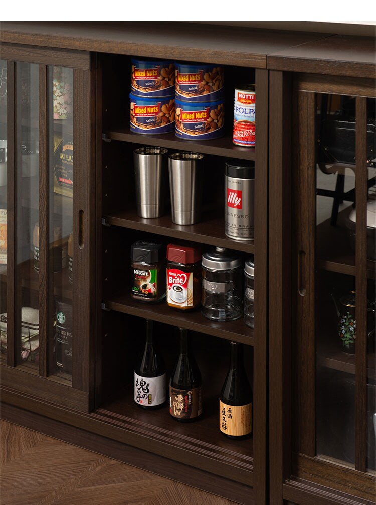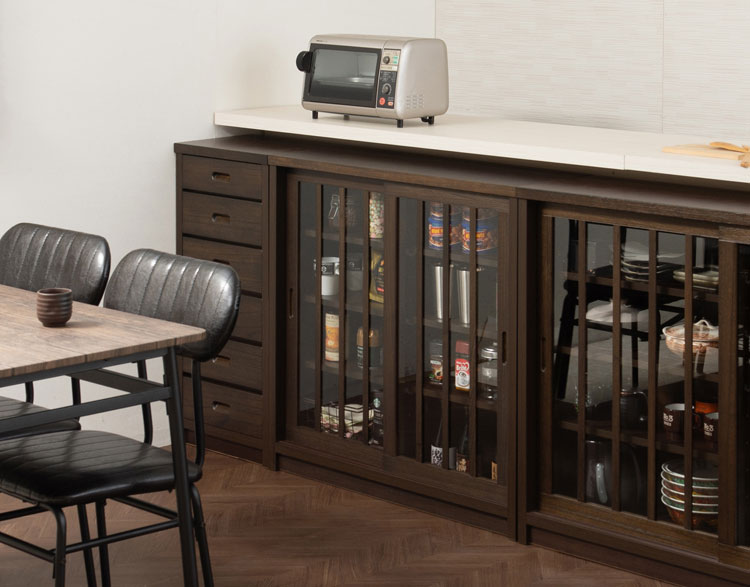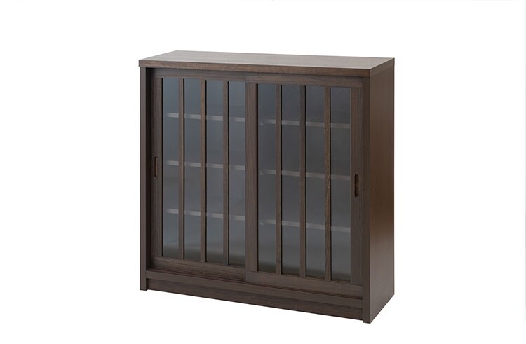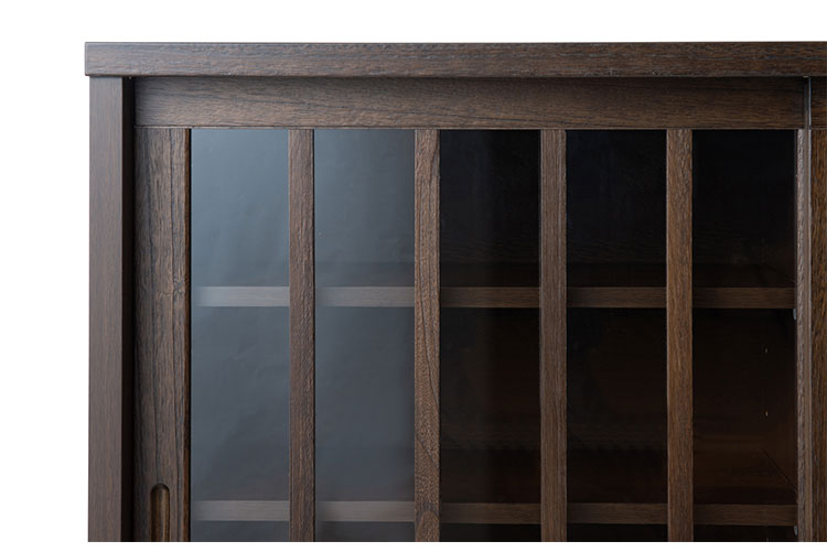 ■商品の仕様/前板枠:桐材(ウレタン樹脂塗装)、扉枠内:ガラス、天板:強化プリント紙化粧繊維板、その他:プリント紙化粧繊維板