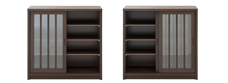 ■商品について/長く使える品質と高級感漂うデザインの【Tatis】シリーズが新登場!桐の木目を引き立たせたうづくり仕上げ、職人が組み上げた、日本製の完成品ならではの洗練されたデザインが魅力的なキッチンカウンター下収納シリーズです。和室はもちろん、洋室でも違和感なくお洒落なお部屋に演出してくれます♪2枚扉の引き戸式カウンター下収納は、すっきりとした仕上げがリビングに置いても飽きのこないデザインになっています。食器類の収納はもちろんの事、棚板の高さを変えて様々な物の収納ができます。カウンター下には案外収納する物が溢れています。CDやDVDを収納したり、アルバムや眼鏡ケースなど小物の収納にも便利です。また棚板を止める金具は特殊な金具を使い、設置すると落ちにくい構造になっています。カウンター下などデッドスペースに、造り付けのようなしっかりとした収納スペースが作れます。他のシリーズと合わせて、キッチンやリビングなどでお洒落に収納できます。
