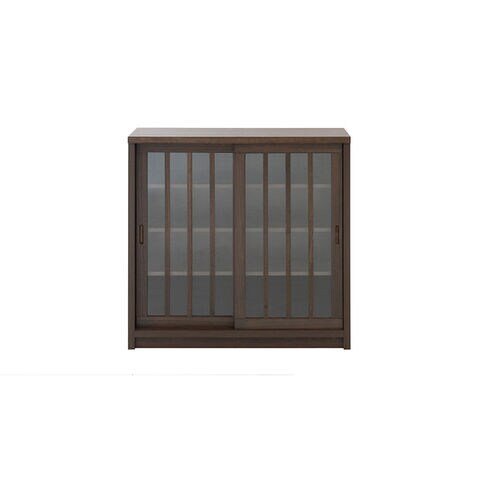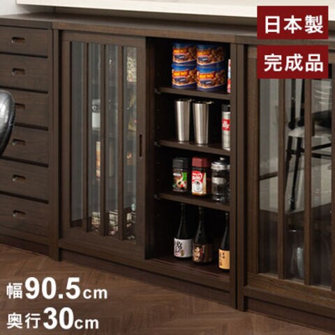 Tatis 幅90.5cm 奥行30cm 高さ86.5cm 天然木桐材の格子ガラス引戸キャビネット カウンター下収納 キッチン収納 ブラウン 日本製 国産 完成品 木製 桐 収納家具 チェスト タンス リビング収納【送料無料】