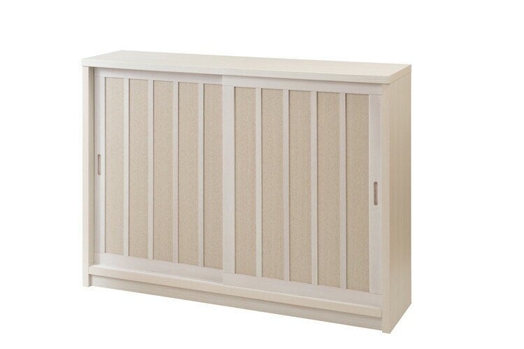 ■商品について/長く使える品質と高級感漂うデザインの【白雪】シリーズが新登場!桐の木目を引き立たせたうづくり仕上げ、職人が組み上げた、日本製の完成品ならではの洗練されたデザインが魅力的なリビングキャビネットシリーズです。和室はもちろん、洋室でも違和感なくお洒落なお部屋に演出してくれます♪2枚扉の引き戸式カウンター下収納は、すっきりとした仕上げがリビングに置いても飽きのこないデザインになっています。開き扉の商品では、開閉のために必要なスペースが扉の幅分必要になってきますが、引き戸式ならわずかなスペースでOK。取り出し易い引き戸式で前のスペースが狭くなっても、使い易くなります。また棚板の高さを変えて様々な物の収納ができます。リビングには案外収納する物が溢れています。CDやDVDを収納したり、アルバムや眼鏡ケースなど小物の収納にも便利です。また、棚板を止める金具は特殊な金具を使い、設置すると落ちにくい構造になっています。他のシリーズと合わせて、キッチンやリビングなどでお洒落に収納できます。