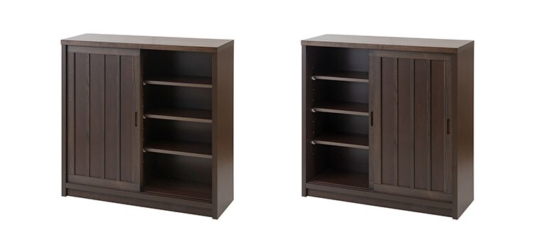 ■商品について/長く使える品質と高級感漂うデザインの【日向】シリーズが新登場!桐の木目を引き立たせたうづくり仕上げ、職人が組み上げた、日本製の完成品ならではの洗練されたデザインが魅力的なリビングキャビネットシリーズです。和室はもちろん、洋室でも違和感なくお洒落なお部屋に演出してくれます♪2枚扉の引き戸式カウンター下収納は、すっきりとした仕上げがリビングに置いても飽きのこないデザインになっています。開き扉の商品では、開閉のために必要なスペースが扉の幅分必要になってきますが、引き戸式ならわずかなスペースでOK。取り出し易い引き戸式で前のスペースが狭くなっても、使い易くなります。また棚板の高さを変えて様々な物の収納ができます。リビングには案外収納する物が溢れています。CDやDVDを収納したり、アルバムや眼鏡ケースなど小物の収納にも便利です。また、棚板を止める金具は特殊な金具を使い、設置すると落ちにくい構造になっています。他のシリーズと合わせて、キッチンやリビングなどでお洒落に収納できます。