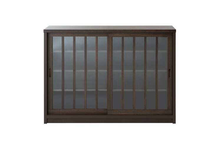 Hinata 日向シリーズ 和モダン引戸キャビネット 幅120.5 奥行30 高さ86.5 キャビネット ブラウン 日本製 国産 完成品 収納 お洒落 一人暮らし 棚 サイドボード DVD 本 収納家具 チェスト リビング【送料無料】