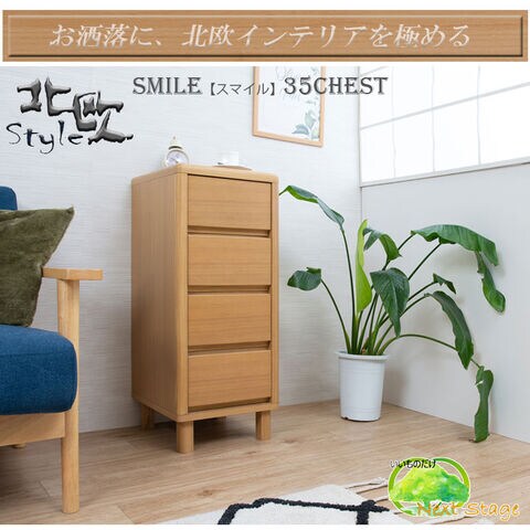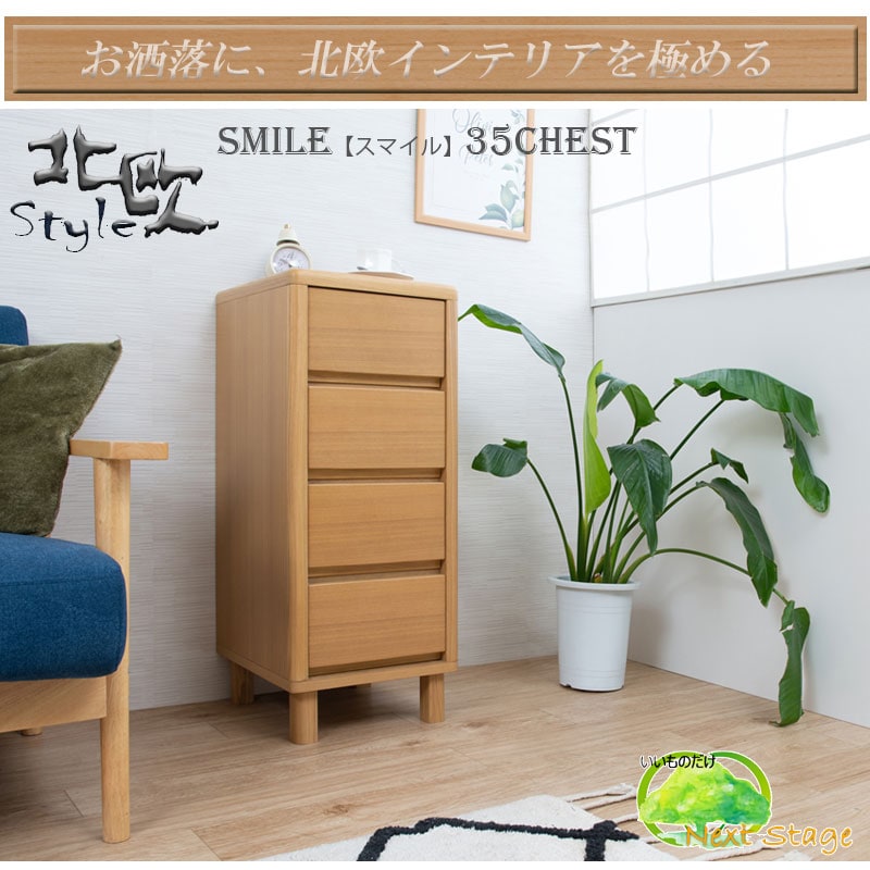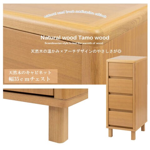 天然木 タモ材 幅35 チェスト スリム 完成品 シンプル おしゃれ 北欧 収納 引き出し シンプル アンティーク リビング ベッドルーム 4段 四段 木製【送料無料】