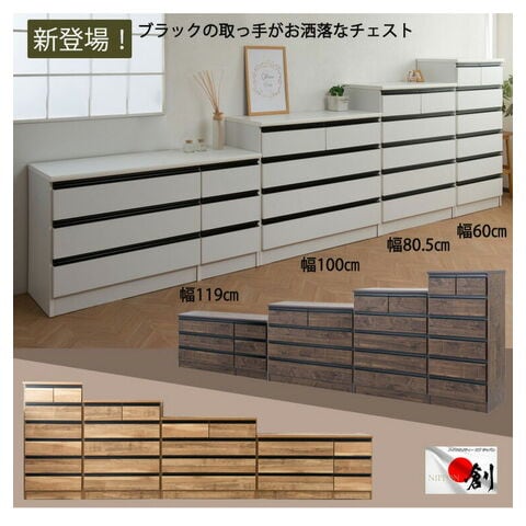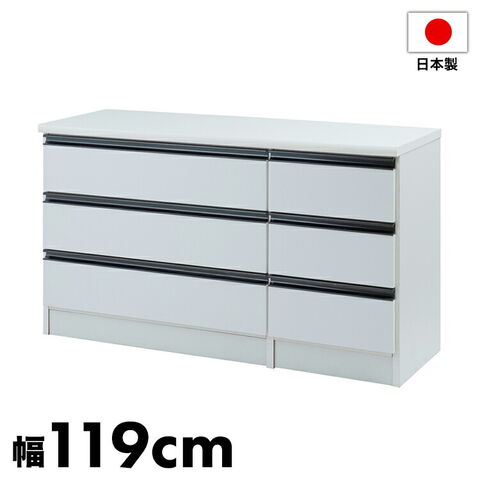 日本製 完成品 大川家具 brash 幅119 チェスト ホワイト 白 大容量 ワイド アンティーク モノトーン モダン 箪笥 タンス 高さ67 ロータイプ ワードローブ 国産【送料無料】