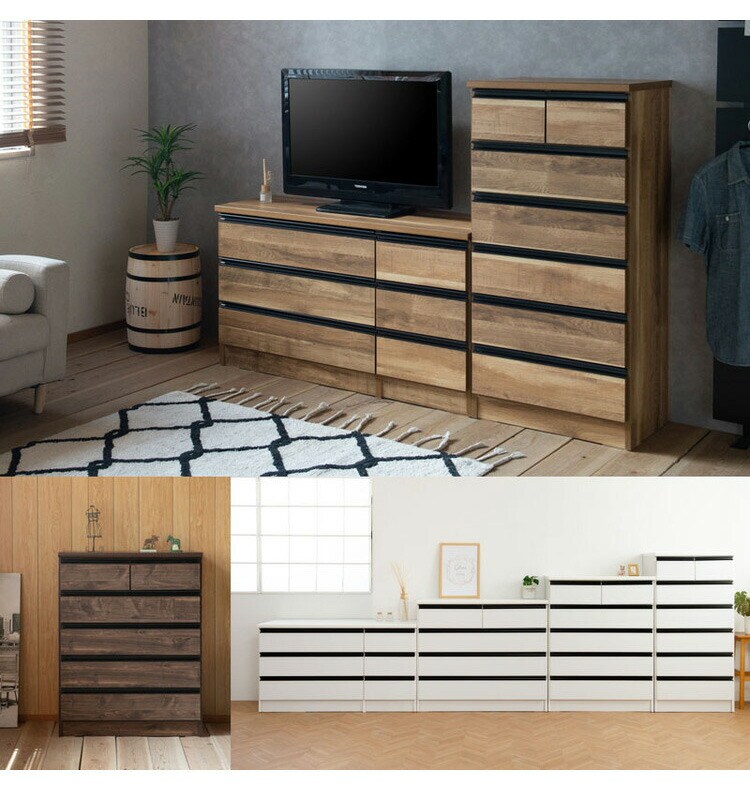 日本製 完成品 大川家具 brash 幅80.5 チェスト ブラウン 茶 大容量 ワイド アンティーク 西海岸 モダン 箪笥 タンス 高さ103 ハイタイプ ワードローブ 国産【送料無料】