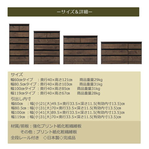 引出し内寸幅80.5cmタイプ:(約)幅(小)31(大)70×奥行33.5×深さ11.5(有効13.5)cm
