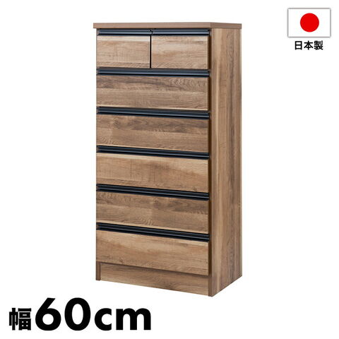 日本製 完成品 大川家具 brash 幅60 チェスト ナチュラル 茶 大容量 ワイド アンティーク 西海岸 モダン 箪笥 タンス 高さ121 ハイタイプ ワードローブ 国産【送料無料】