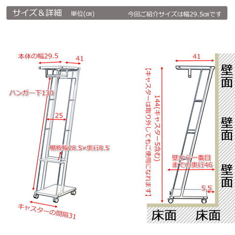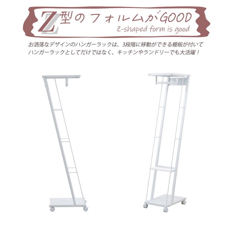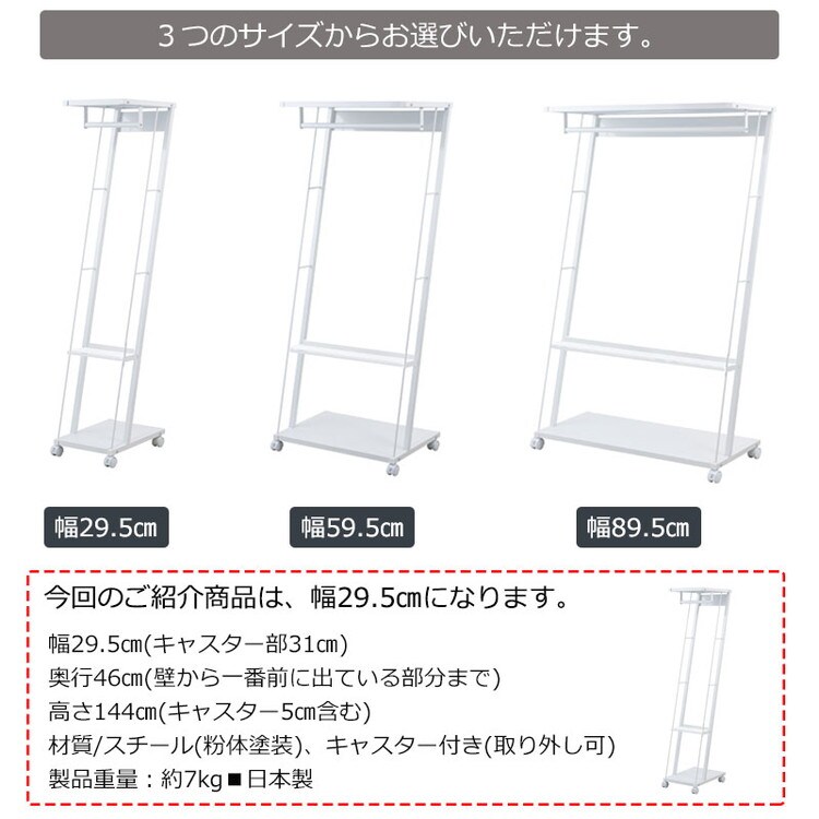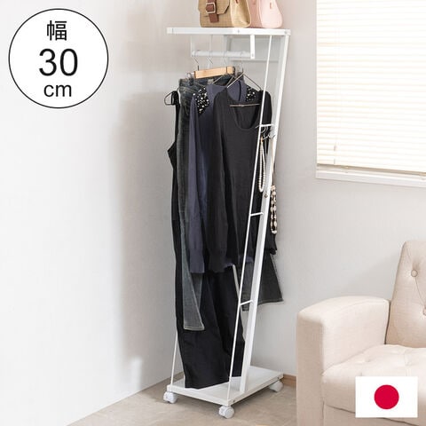 ハンガーラック ラック ホワイト 白 幅30 キャスター付き スチールラック リビング 寝室 衣類収納 ハンガー 洋服掛け 洋服ハンガー 洋服収納 ダイニング ベッドルーム【送料無料】