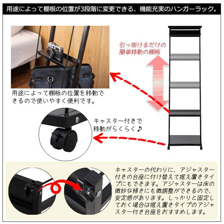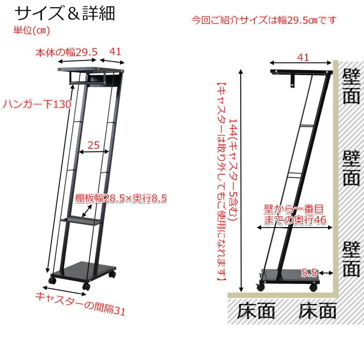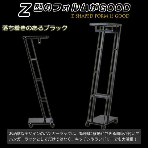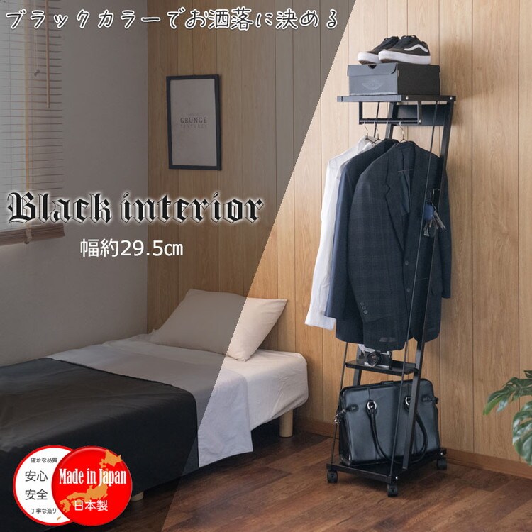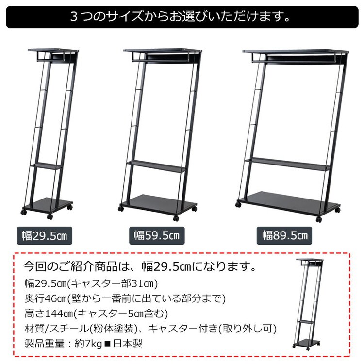 ハンガーラック ラック ブラック 黒 幅30 キャスター付き スチールラック リビング 寝室 衣類収納 ハンガー 洋服掛け 洋服ハンガー 洋服収納 ダイニング ベッドルーム【送料無料】